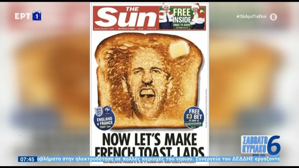 Το τρολάρισμα το άρχισε η βρετανική εφημερίδα πριν τον αγώνα που είχε πρωτοσέλιδο τον Χάρι Κέιν σε μορφή ψωμί του τοστ και έλεγε «Ας φτιάξουμε γαλλικό τοστ». Μετά το τέλος του αγώνα όμως και την πρόκριση της Γαλλίας η γαλλική εφημερίδα απάντηση με μια φωτογραφία με τους πανηγυρισμούς των Γάλλων και έγραφε «Συγγνώμη, καλό παιχνίδι» στα αγγλικά κιόλας για να το καταλαβαίνουν όλοι.