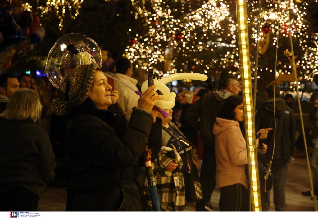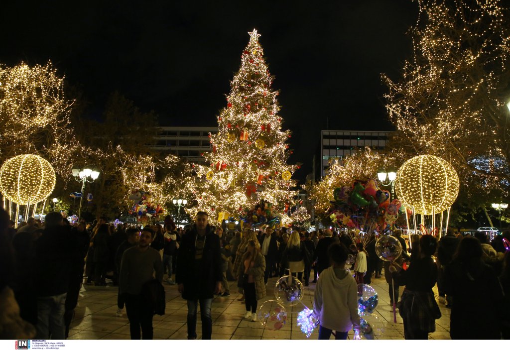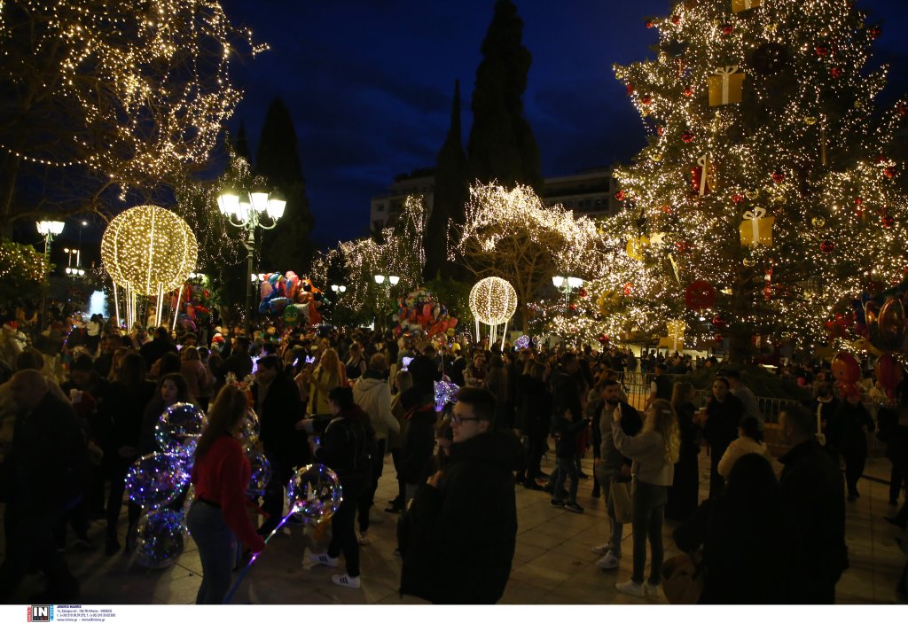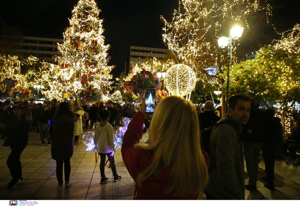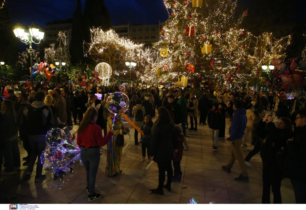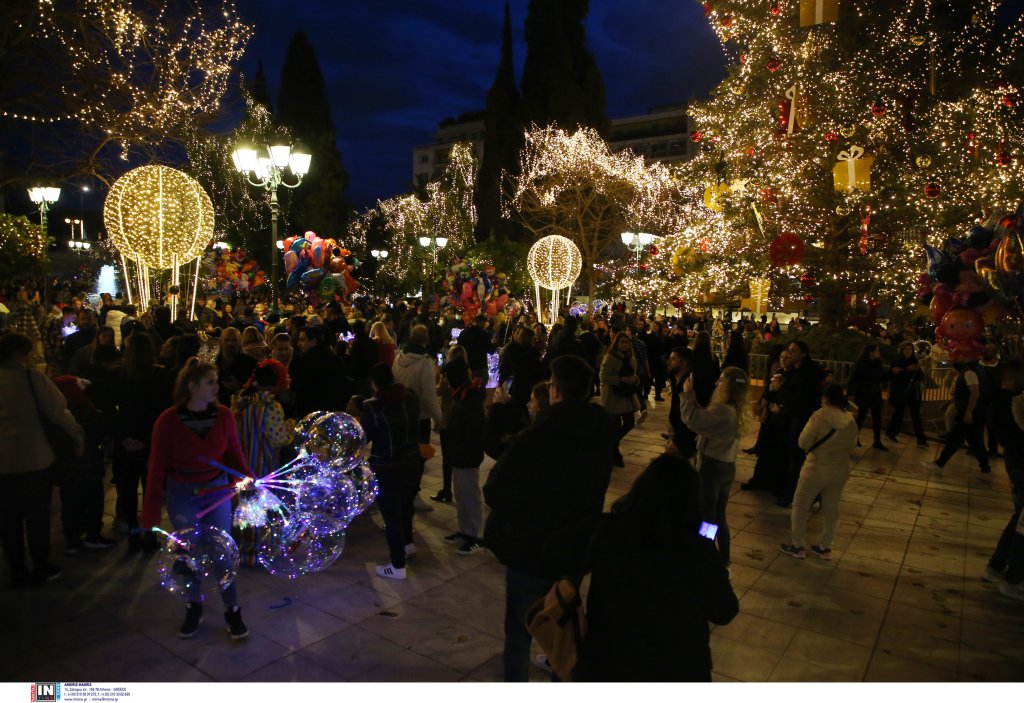 Πλήθος κόσμου στη στολισμένη πλατεία Συντάγματος (ΦΩΤΟ)