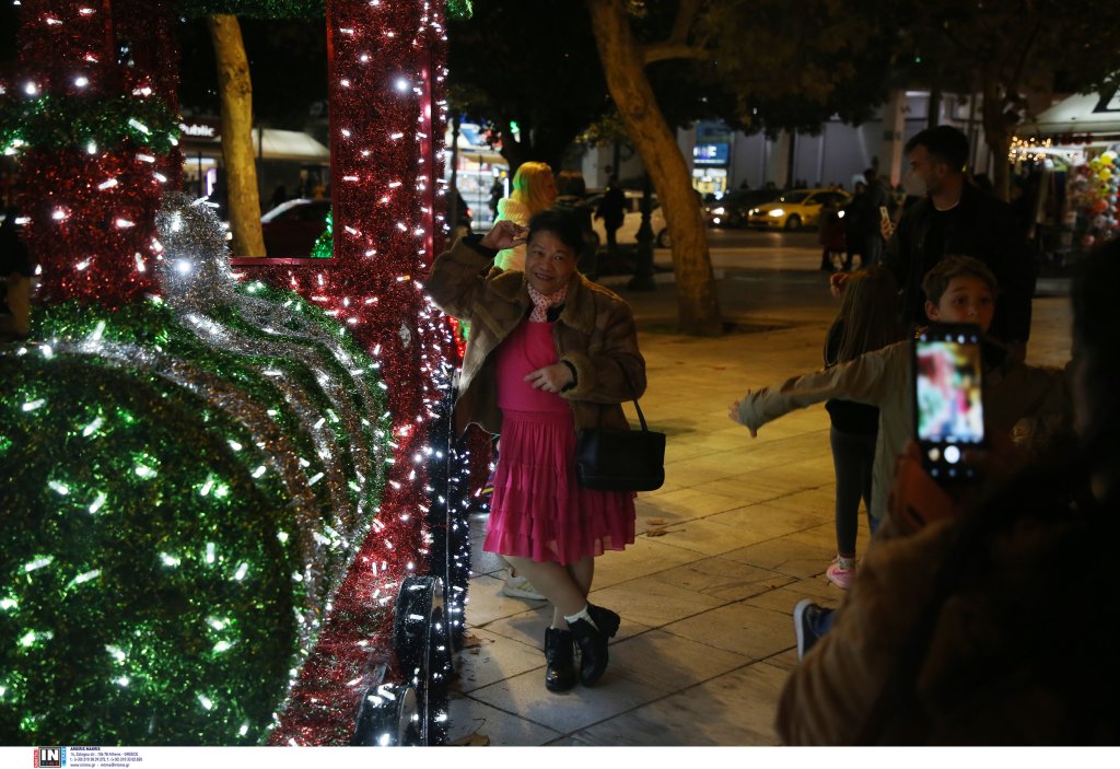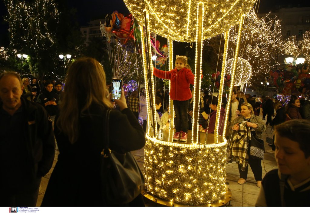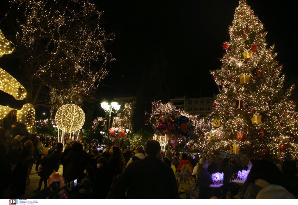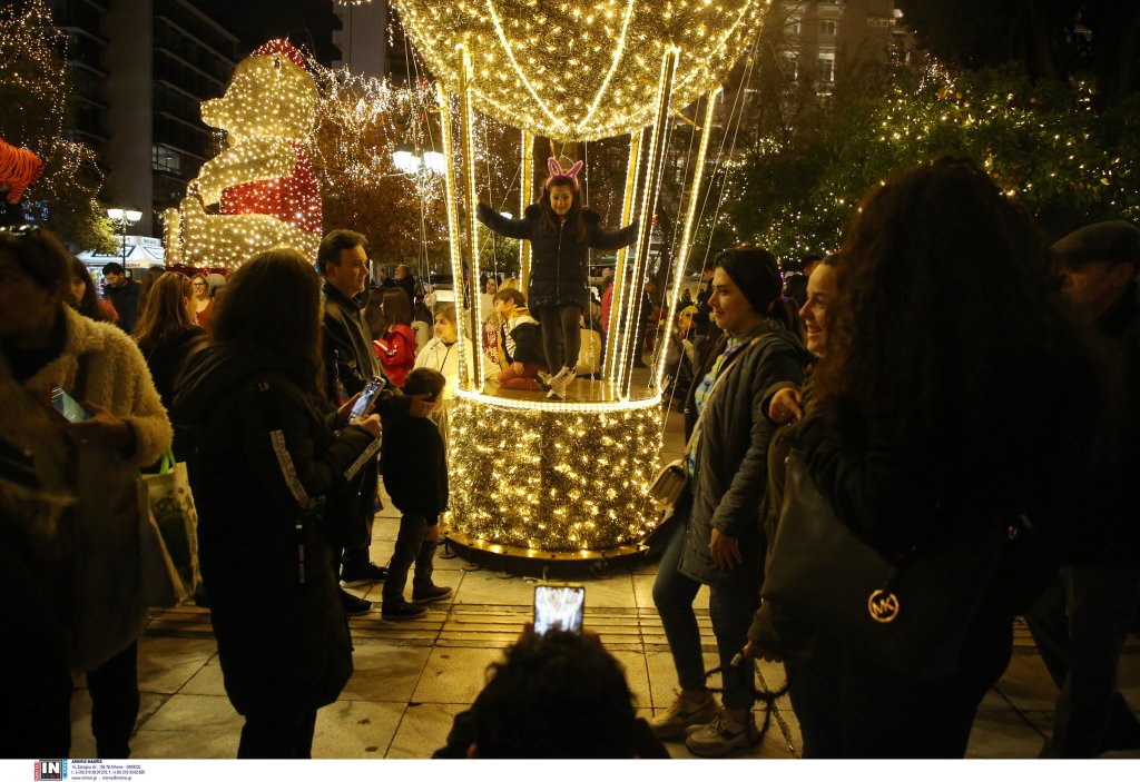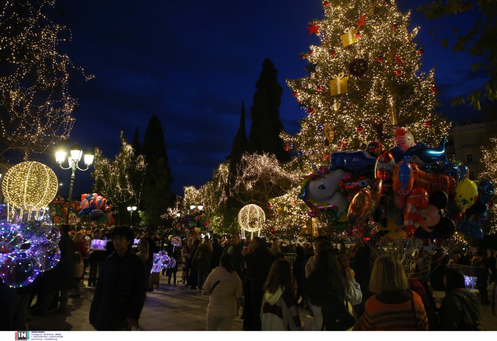 Πλήθος κόσμου στη στολισμένη πλατεία Συντάγματος (ΦΩΤΟ)