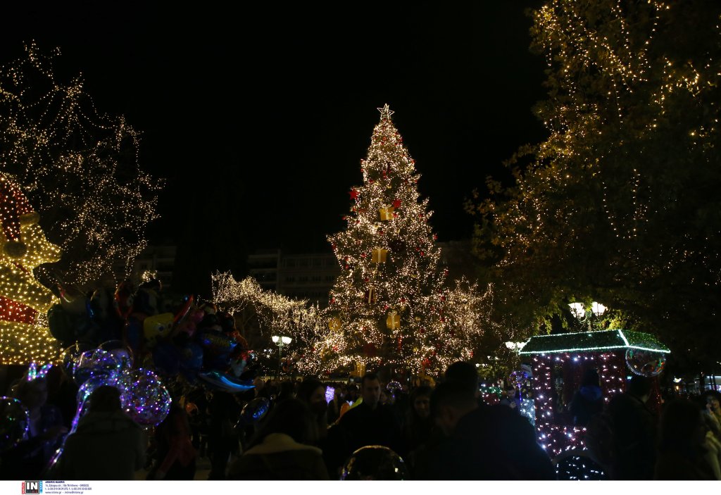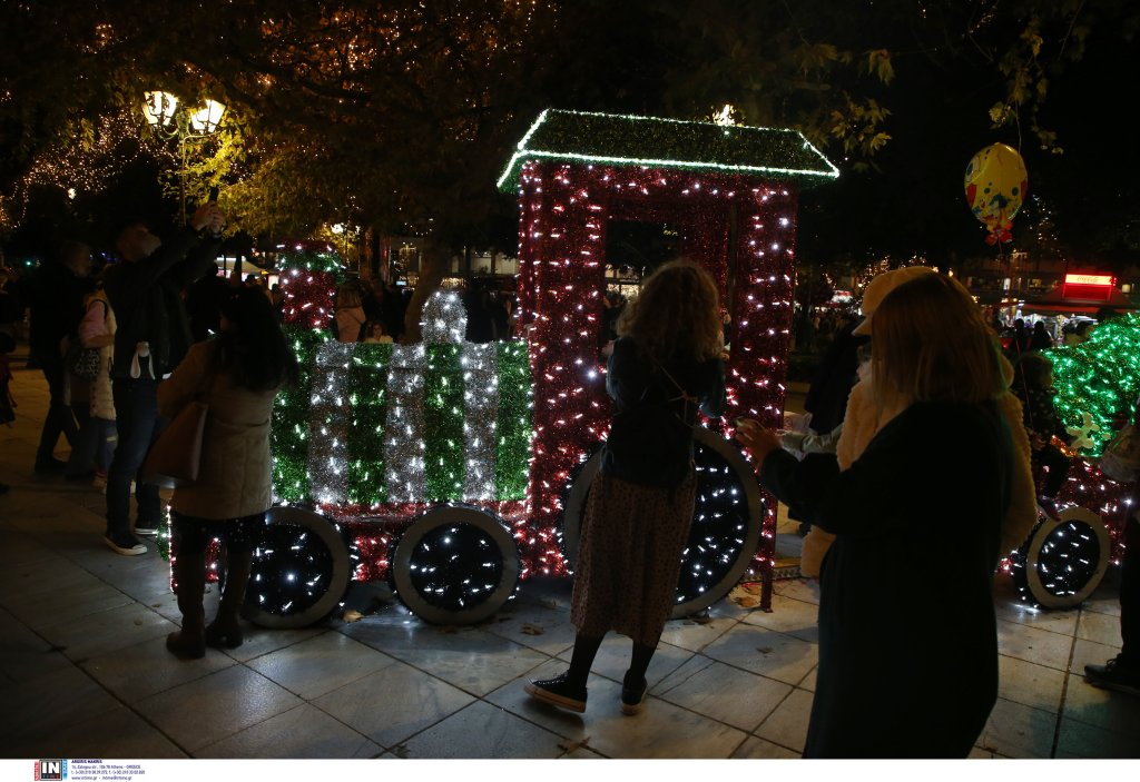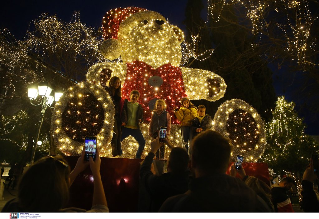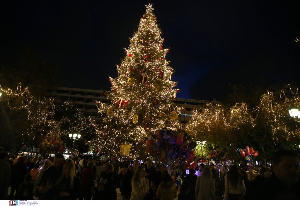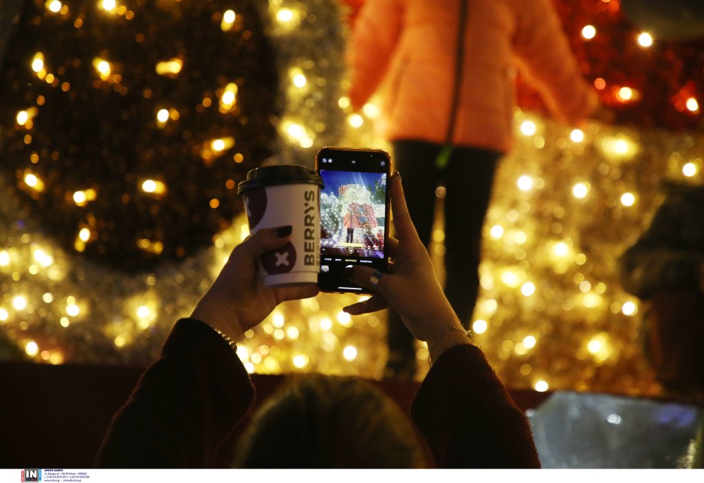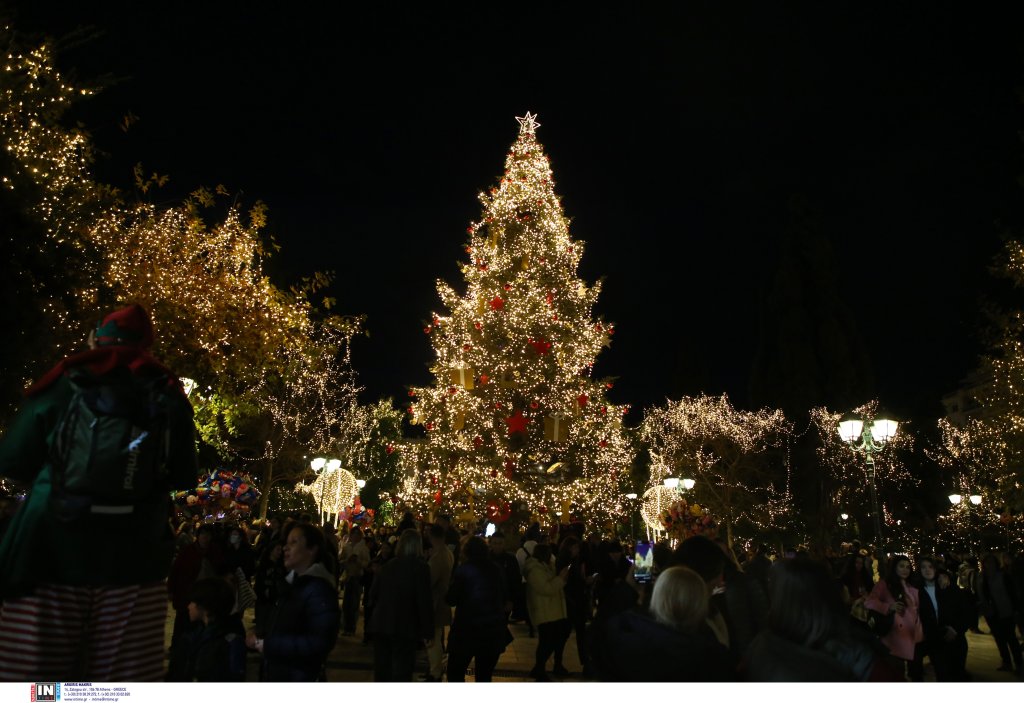Πλήθος κόσμου στη στολισμένη πλατεία Συντάγματος (ΦΩΤΟ)