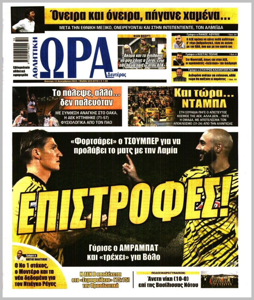 Ειναι σε ολους μας γνωστο, οταν ο κυριος Αγγελοπουλος ανελαβε την ΑΕΚ ηταν μια ομαδα η οποια δεν ειχε στον ηλιο μοιρα και συνοδευοταν απο τραγικες-θλιβερες αγωνιστικα χρονιες,εχοντας πιασει δυστυχως πατο. Με τις προσπαθειες του και κατω απο αντιξοοες συνθηκες καταφερε να φερει το χαμογελο στα χειλη ολων των φιλων της ομαδας, κατακτωντας παγκοσμιο τιτλο, ευρωπαϊκο και δυο κυπελλα Ελλαδας.Στην πορεια διαπιστωθηκε οτι μονος του δεν μπορει να αντεξει το δυσβαστακτο... ΣΥΝΕΧΕΙΑ οικονομικο βαρος,γεγονος το οποιο αποτυπωνεται στην εικονα της ομαδας τα τελευταια χρονια,προσωπικα μου δημιουργει απορια πως γινεται επιφανης οικονομικα φιλοι της Α Ε Κ να μη ευαισθητοποιουνται[δεν ειναι υποχρεωμενοι......] συμβαλλοντας στην αγωνιστικη αναγεννηση της.Συμφωνω οτι και εμεις οι φιλαθλοι εχουμε τις δικες μας ευθυνες,διοτι το να κανεις κριτικη και να αποστασιοποιησαι απο το προβλημα σιγουρα δεν προσφερεις καμια βοηθεια.Βεβαια εδω με την ευκαιρια προκυπτει ενα πολυ σοβαρο θεμα,η απουσια της πολιτειας,αληθεια εχει εξεταστει πως γινεται χρονια τωρα ο ακατανομαστος και ο βαζελος να ξοδευουν π.χ 30 εκ. και να εισπρατουν 8 η' 10 απο αυτα, οι αρνητικες διαφορες πρεπει να καλυπτονται και δεν μπορει να γινεται παντα με αυξηση του μετοχικου κεφαλαιου,αυτο κυριοι της πολιτειας και των θεσμων που διοικουν το αθλημα με απλα λογια λεγεται Αθεμιτος Ανταγωνισμος,οποιος καταλαβε καταλαβε...........................Α Ε Κ Α Ρ Α...ΤΕΛΟΣ...