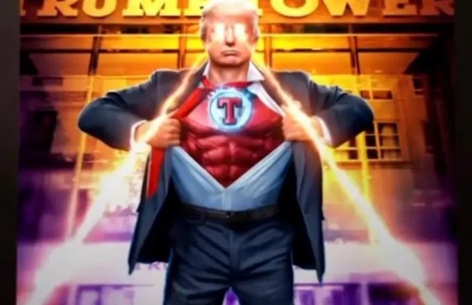 Στο βίντεο διάρκειας 15 δευτερολέπτων, ο 76χρονος Τραμπ είπε στους ακολούθους του ότι «η Αμερική χρειάζεται έναν υπερήρωα!», ενώ ακούγεται μουσική βγαλμένη από ταινία της Marvel. Στη συνέχεια, ο πρώην πρόεδρος των ΗΠΑ εμφανίζεται σαν Σούπερμαν μπροστά στον Πύργο Τραμπ, σκίζοντας το κοστούμι του και αποκαλύπτοντας ένα καλοσχηματισμένο σώμα γεμάτο κοιλιακούς με το λογότυπο «T» και μάτια που βγάζουν λέιζερ.