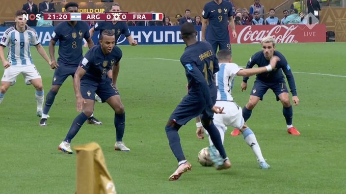 Ο Ντι Μαρια έχει ηδη πέσει από το άγγιγμα του Ντεμπελέ και μετά υπάρχει επαφή στα πόδια..