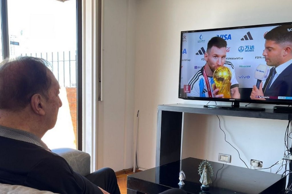 Μία φωτογραφία στα social media από τους συγγενείς του δείχνουν τον μυθικό προπονητή να παρακολουθεί τις δηλώσεις του Λιονέλ Μέσι με το τρόπαιο του Παγκοσμίου Κυπέλλου ύστερα από το νικητήριο τελικό κόντρα στη Γαλλία.