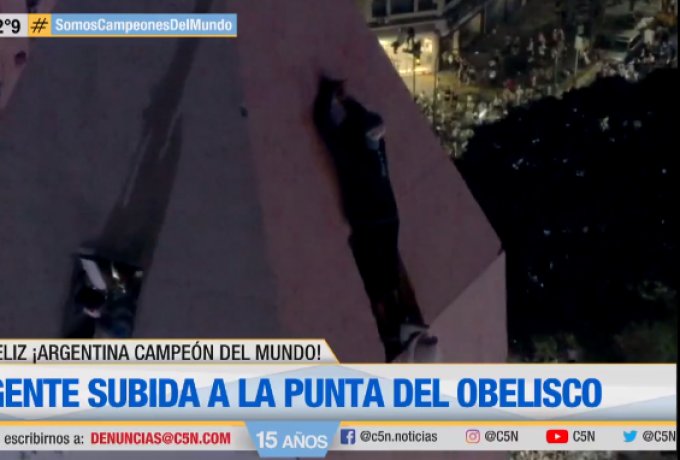 FESTEJOS POR LA SCALONETA: PERSONAS TREPADAS EN LA PUNTA DEL OBELISCO #SomosCampeonesDelMundo