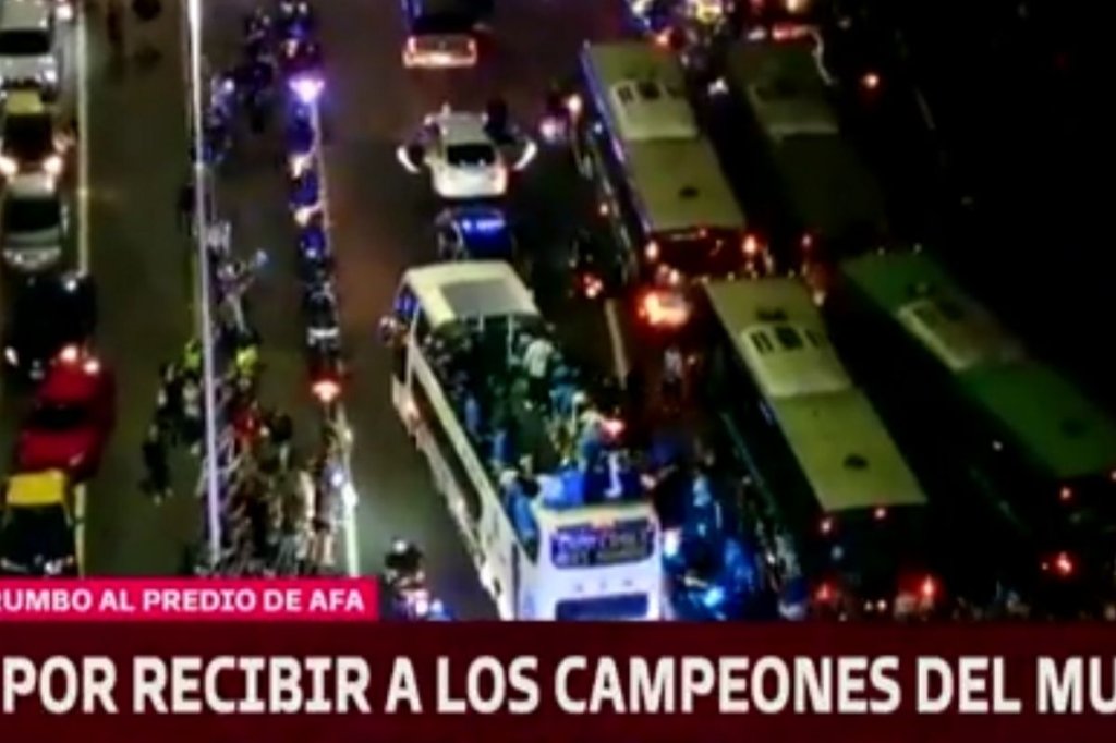 ¡LOS CAMPEONES DEL MUNDO PARTEN RUMBO AL PREDIO DE LA AFA!#TyCSportsMundial pic.twitter.com/OB1QVEyOwL