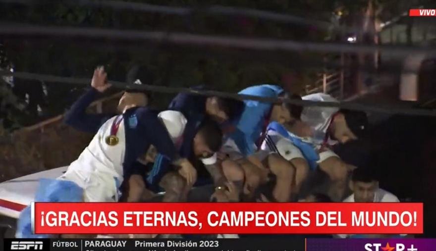 Ο Λιονέλ Μέσι, ο Άνχελ Ντι Μαρία, ο Νικολάς Οταμένδι, ο Ροντρίγκο Ντε Πολ και ο Λεάντρο Παρέδες αποφάσισαν να καθίσουν σε ένα ύψωμα στο πίσω μέρος της οροφής του πούλμαν και παραλίγο να γίνει ατύχημα.