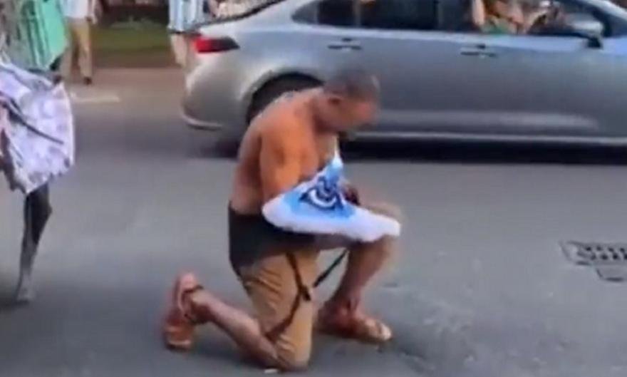 Ο άστεγος άνδρας πλέον ένιωθε αυτόματα μέρος της γιορτής. Φανερά συγκινημένος, γονάτισε και με κλάματα άρχισε να δέχεται τις αγκαλιές των συμπατριωτών του ξεχνώντας για λίγο τις δυσκολίες που αντιμετωπίζει στην καθημερινότητά του.