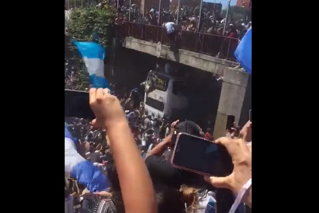 Το πούλμαν που μετέφερε την αποστολή των Παγκόσμιων Πρωταθλητών στους δρόμους του Μπουένος Άιρες περνούσε από μια γέφυρα, όταν δύο φίλαθλοι που βρίσκονταν από πάνω της αποφάσισαν να πηδήξουν πάνω στο όχημα.