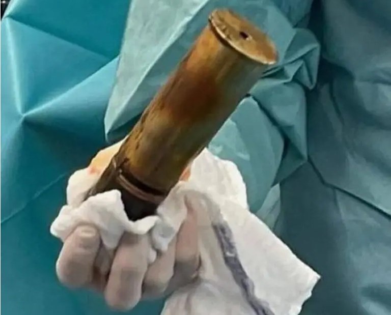 «Ένα μήλο, ένα μάνγκο ή ακόμα και ένα κουτάκι με αφρό ξυρίσματος, έχουμε συνηθίσει να βρίσκουμε ασυνήθιστα αντικείμενα που μπαίνουν εκεί που δεν θα έπρεπε», δήλωσε ένας γιατρός. «Μα, μια οβίδα; Ποτέ!»