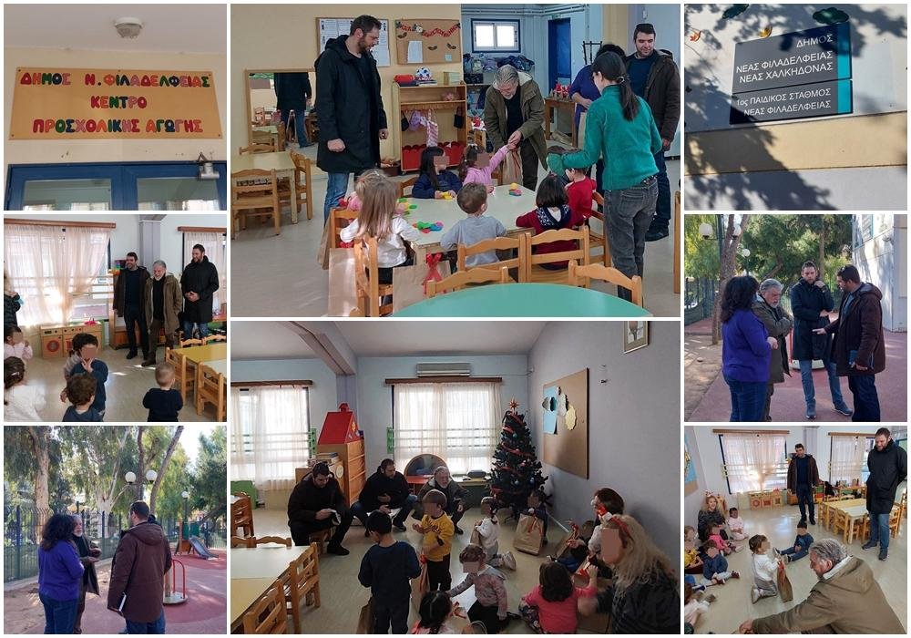 Στο πλαίσιο αυτής της πρωτοβουλίας ο Δήμαρχος Νέας Φιλαδέλφειας – Νέας Χαλκηδόνας Γιάννης Βούρος, συνοδευόμενος από τον Αντιδήμαρχο Παιδείας & Προσχολικής Αγωγής Θάνο Λέκκα, και τον Αντιδήμαρχο Πρασίνου & Άλσους Σωτήρη Κοσκολέτο, επισκέφθηκε τον 1ο Παιδικό Σταθμό, δηλώνοντας: «Θέλω να ευχαριστήσω τόσο τον αρμόδιο Αντιδήμαρχο Θ. Λέκκα, όσο και τα στελέχη της Διεύθυνσης Προσχολικής Αγωγής του Δήμου μας, που σχεδίασαν και κυρίως υλοποίησαν αυτήν την ξεχωριστή δράση που προσφέρει χαρά και κάνει τους μικρούς μας φίλους να χαμογελούν! Με την ευκαιρία να ευχηθώ Καλά Χριστούγεννα και ένα ευτυχισμένο 2023 για όλες και όλους. Χρόνια πολλά!».