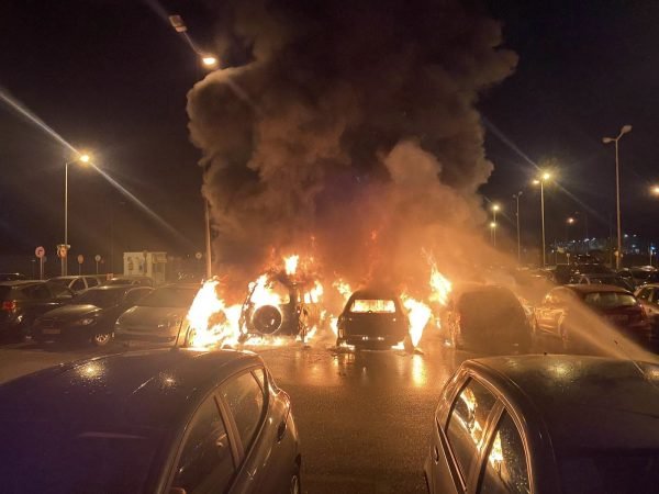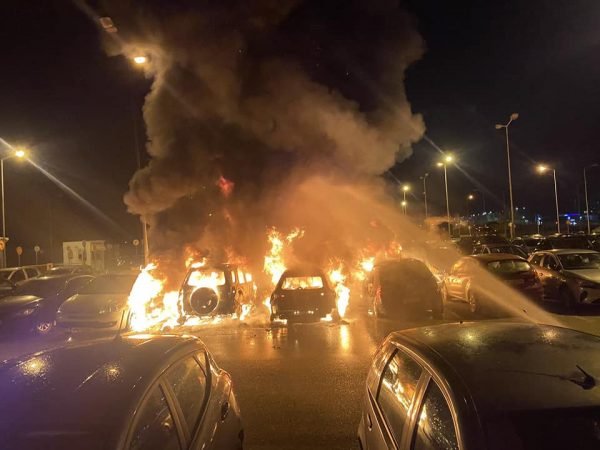 Μεγάλη φωτιά ξέσπασε στο πάρκινγκ του αεροδρομίου “Δημόκριτος” της Αλεξανδρούπολης, λίγο μετά τα μεσάνυχτα των Χριστουγέννων.