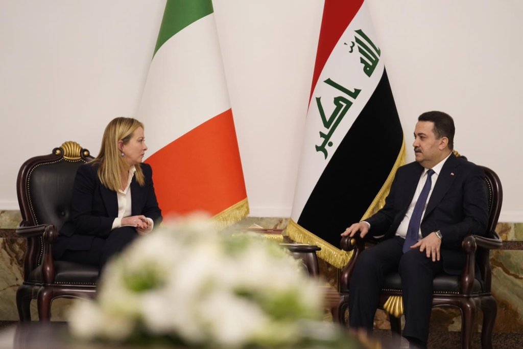 Il PdC @GiorgiaMeloni incontra PM iracheno @mohamedshia. Panoramica dei rapporti internazionali e regionali, dell'apporto italiano e del ruolo dell'Iraq nell'area. Focus sull'ottima e salda relazione ???????????????? in campo politico, difesa e sicurezza, culturale, economico e cooperazione. pic.twitter.com/gNpvr1rEYP