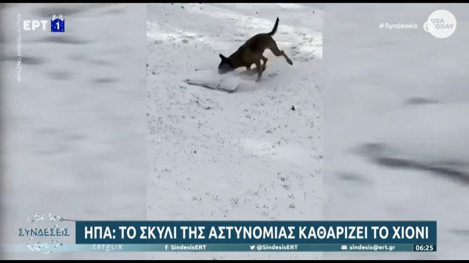 ΗΠΑ: Το σκυλί της αστυνομίας καθαρίζει το χιόνι (VIDEO)
