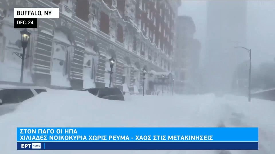 Η χειμερινή καταιγίδα με παγωμένους ανέμους, που σαρώνει εδώ και ημέρες τις κεντρικές και τις ανατολικές Ηνωμένες Πολιτείες συνεχίζει να θερίζει ζωές, αφήνοντας επίσης δεκάδες χιλιάδες Αμερικανούς χωρίς ηλεκτρικό τις ημέρες των Χριστουγέννων. Τουλάχιστον 27 άνθρωποι έχασαν τη ζωή τους μονάχα στην κομητεία Έρι της Νέας Υόρκης, ανεβάζοντας τον αριθμό των νεκρών σε εθνικό επίπεδο στους 55.
