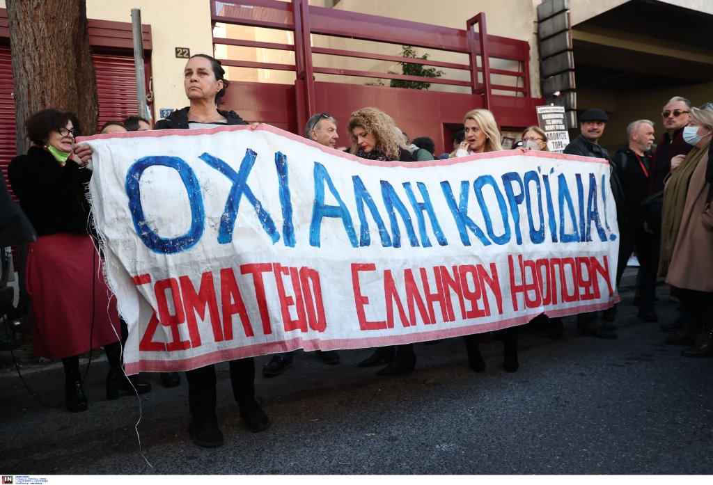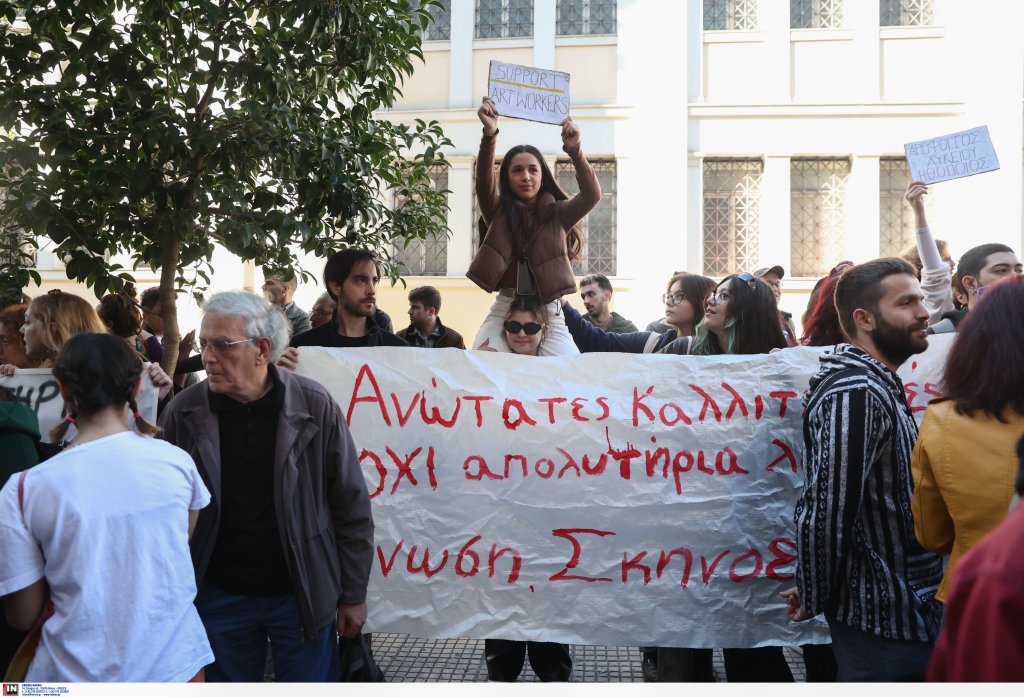 Νωρίτερα, είχαν συγκεντρωθεί έξω από το Υπουργείο Πολιτισμού διαμαρτυρόμενοι για το προεδρικό διάταγμα που αναφέρεται στη διαβάθμιση των πτυχίων των καλλιτεχνικών σχολών, μετά από κάλεσμα της Πανελλήνιας Ομοσπονδίας Θεάματος Ακροάματος (Π.Ο.Θ.Α). Υπενθυμίζεται ότι τα πτυχία των καλλιτεχνικών σχολών εξισώνονται πλέον με τα απολυτήρια Λυκείου κάτι που έχει προκαλέσει την οργή των καλλιτεχνικών σωματείων.
