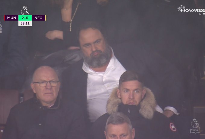 Την αναμέτρηση της Μάντσεστερ Γιουνάιτεντ με τη Νότιγχαμ Φόρεστ στο Old Trafford παρακολουθεί ο Βαγγέλης Μαρινάκης.Ο ιδιοκτήτης της Φόρεστ παρακολουθεί την ομάδα του που βρίσκεται πίσω στο σκορ με 2-0.