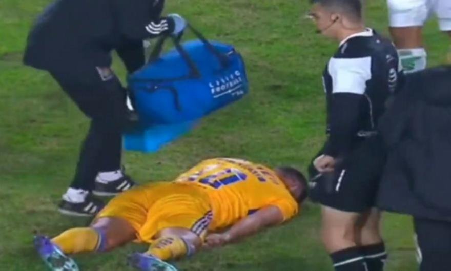 Ο 37χρονος Γάλλος επιθετικός της Τίγκρες δέχτηκε την μπάλα στον σβέρκο και, ενώ αρχικά έδειξε ότι είναι καλά, στη συνέχεια λιποθύμησε!