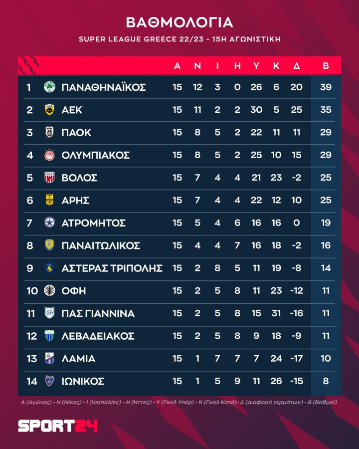 Τα αποτελέσματα της 15ης αγωνιστικής