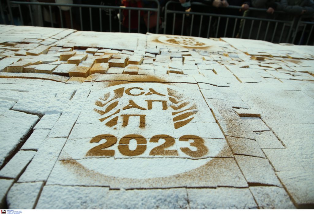 Η Συντεχνία Αρτοποιών Αθηνών, Προαστίων και Περιχώρων (ΣΑΑΠΠ) και ο Δήμος Περιστερίου σε μια μοναδική γιορτή δημιούργησαν και φέτος τη μεγαλύτερη βασιλόπιτα, στις 30 Δεκεμβρίου 2022, στην πλατεία Δημαρχείου – σταθμός Μετρό Περιστέρι.