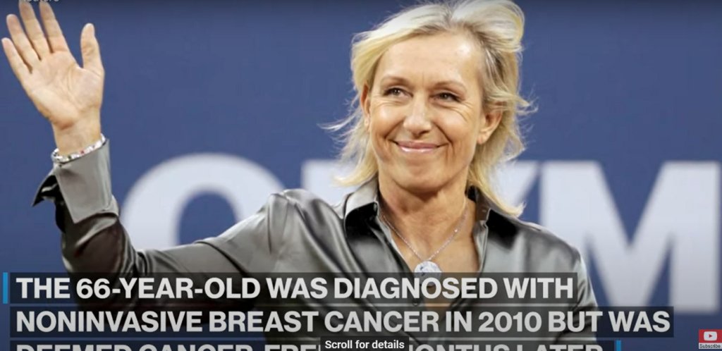 Η Ναβρατίλοβα, 66 ετών και πρώην πρωταθλήτρια του Γουίμπλεντον, είπε ότι διαγνώστηκε με καρκίνο στο λαιμό και στο μαστό, αφού ανακάλυψε έναν πρησμένο λεμφαδένα στο λαιμό της τον Νοέμβριο.