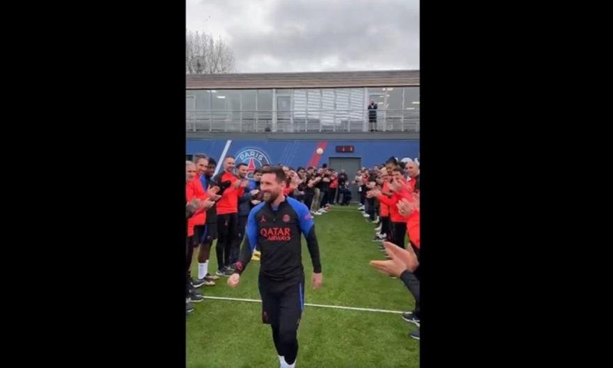 Όπως φαίνεται και στο βίντεο, έχει δημιουργηθεί ένα... αυτοσχέδιο μονοπάτι από την είσοδο του προπονητικού κέντρου στο οποίο ο Μέσι έλαβε τα συγχαρητήρια των ανθρώπων της Παρί, ενώ στο τέλος του απονεμήθηκε και τιμητικό δώρο από τον σύμβουλο της ομάδας, Λουίς Κάμπος.