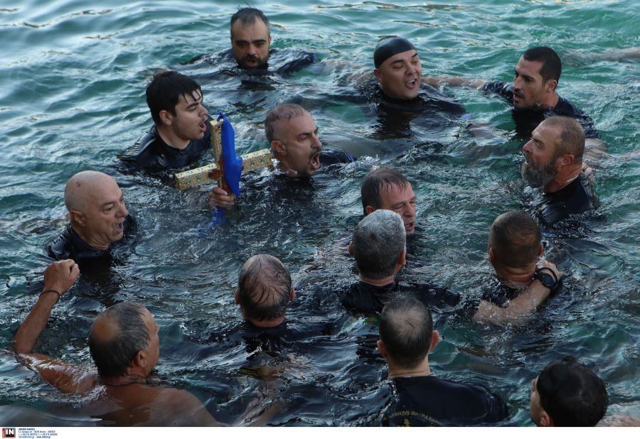 Τον Αγιασμό των Υδάτων πραγματοποιήσε ο Αρχιεπίσκοπος Ιερώνυμος σε μια λαμπρή τελετή στο λιμάνι του Πειραιά υπό την παρουσία δυο πυραυλάκατων του Πολεμικού Ναυτικού.