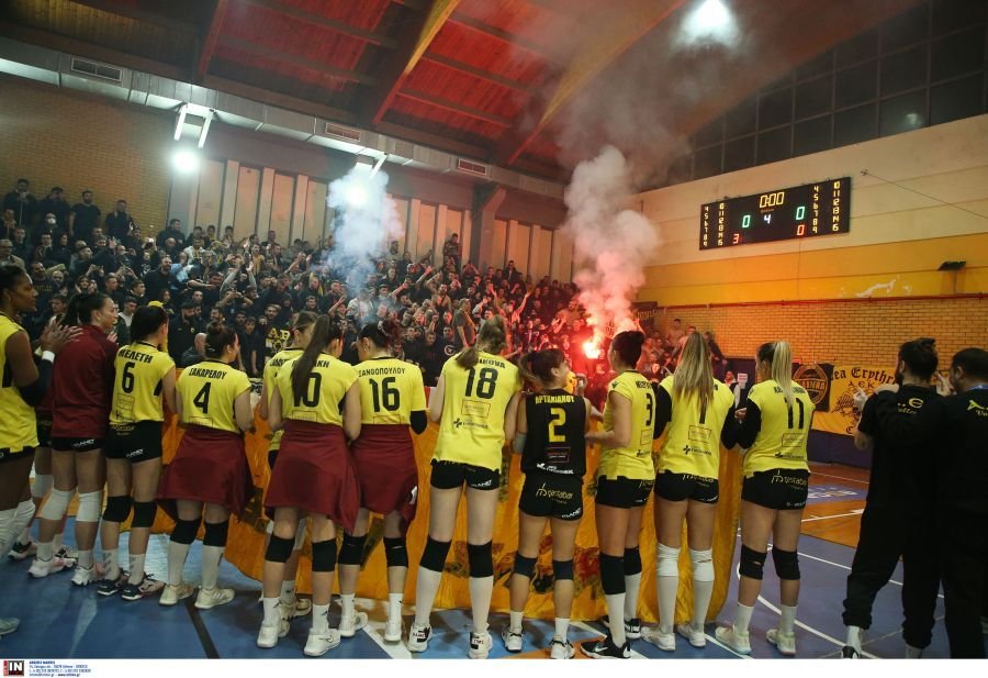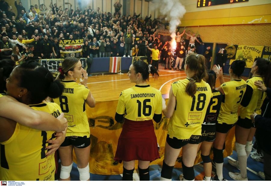 Η γυναικεία ομάδα βόλεϊ της ΑΕΚ έσπασε το αήττητο του ΠΑΟΚ, καθώς τον νίκησε με 3-0 σετ μέσα στην «καυτή» Νέα Φιλαδέλφεια. Oι οπαδοί της Ένωσης έδωσαν δυναμικό «παρών» στις εξέδρες του «Απ. Κόντος» και με τα συνθήματά τους έδωσαν μεγάλη ώθηση στις «κιτρινόμαυρες».