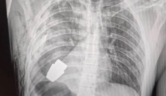 Η είδηση έγινε γνωστή μέσω ανάρτησης στη σελίδα της ιατρικής υπηρεσίας των ενόπλων δυνάμεων της Ουκρανίας στο Facebook, που δείχνει την ακτινογραφία με τη χειροβομβίδα καρφωμένη στο στήθος του στρατιώτη.