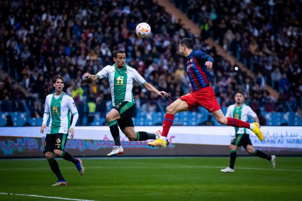 Στο 31’ μετά από κόρνερ του Φεκίρ ο Κανάλες πήρε την κεφαλιά αλλά ο Τερ Στέγκεν έσωσε και στο 35’ μετά από ενέργεια του Ενρίκε, ο Ιγκλέσιας δεν κατάφερε να βρει τη μπάλα με προβολή και στο δεύτερο δοκάρι ο Αραούχο πρόλαβε τον Ρόδρι πριν στείλει τη μπάλα σε κενή εστία. Και τελικά στο 40’ ο Πέδρι έβγαλε μαγική μπαλιά στον Ντεμπελέ που απέφυγε έναν αντίπαλο, έδωσε την μπάλα στον Λεβαντόφσκι, ο οποίος με διπλή προσπάθεια άνοιξε το σκορ.