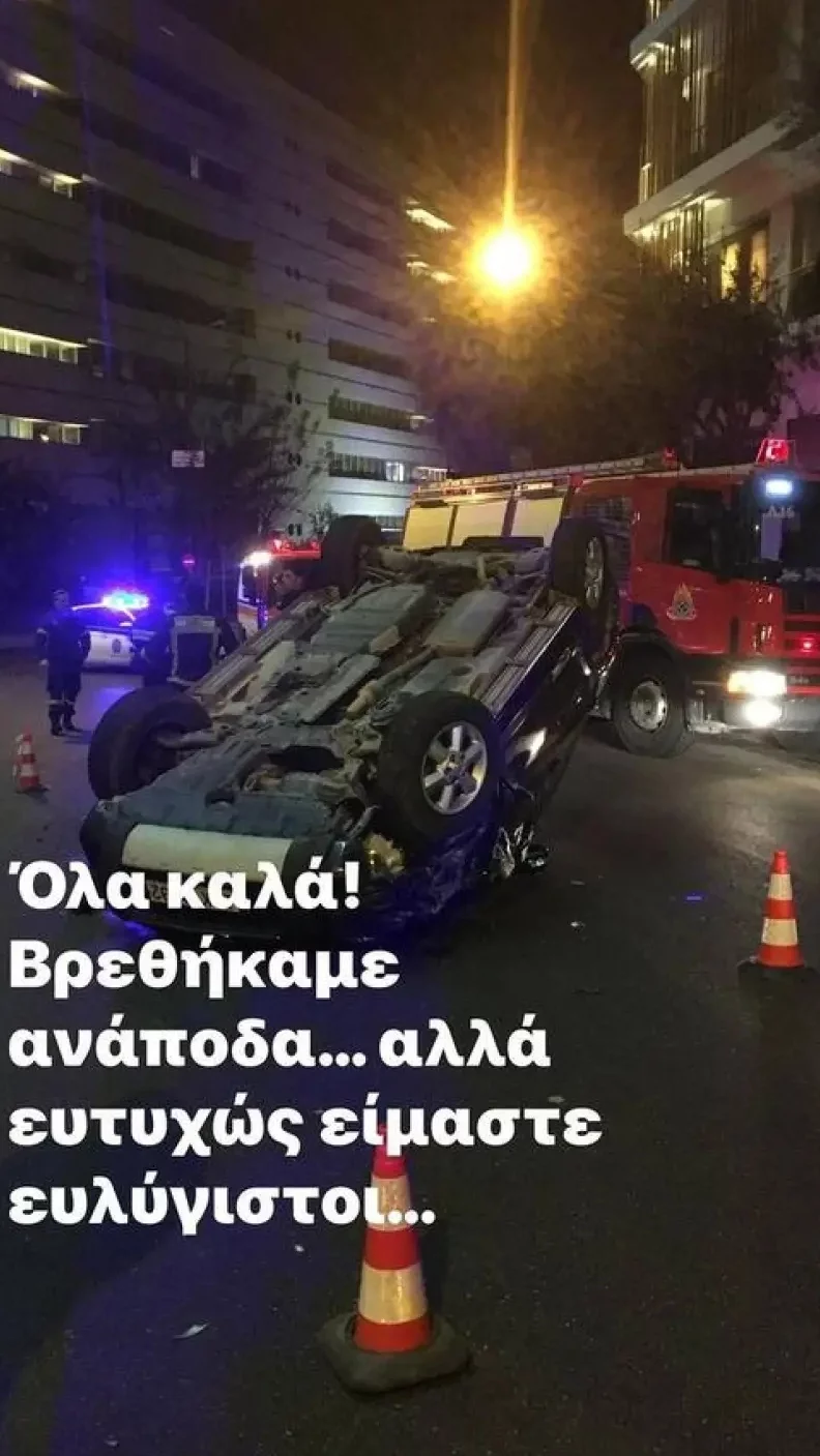 Όπως φαίνεται στην παρακάτω φωτογραφία που ανήρτησε ο ίδιος σε ένα από τα Insta Story του, το αυτοκίνητό του αναποδογύρισε και χρειάστηκε να τον απεγκλωβίσει η πυροσβεστική, που έφτασε άμεσα στο σημείο μαζί και με την τροχαία. Όπως ενημέρωσε όλοι είναι πολύ καλά στην υγεία τους.