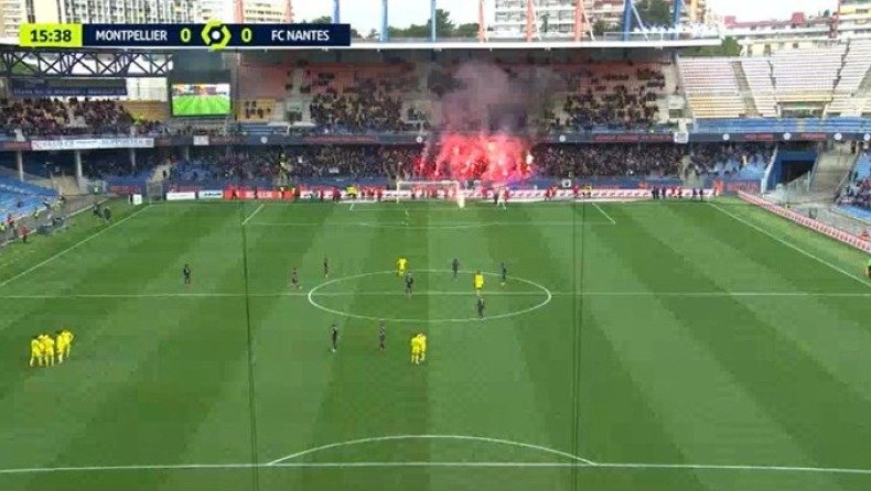Στο Stade de la Mosson, η Ναντ κατάφερε να πάρει την πρώτη της νίκη, μακριά από την έδρα της, μετά από εννέα αποτυχημένες προσπάθειες. Επικράτησε 3-0 της Μονπελιέ, σε ένα παιχνίδι που σημαδεύτηκε από τη ρίψη καπνογόνων, εντός αγωνιστικού χώρου, από τους οπαδούς των γηπεδούχων, σε ένδειξη διαμαρτυρίας προς τη διοίκηση. Το ματς διεκόπη, προσωρινά, στο 16ο λεπτό, για να ξεκινήσει, ξανά, όταν καθάρισε η ατμόσφαιρα. Στο 42ο λεπτό, η Μονπελιέ έμεινε με δέκα παίκτες, γιατί ο Καζρί αποβλήθηκε, με απευθείας κόκκινη, και, στο 12ο λεπτό των καθυστερήσεων, η Ναντ άνοιξε το σκορ με τον Ζιροτό.