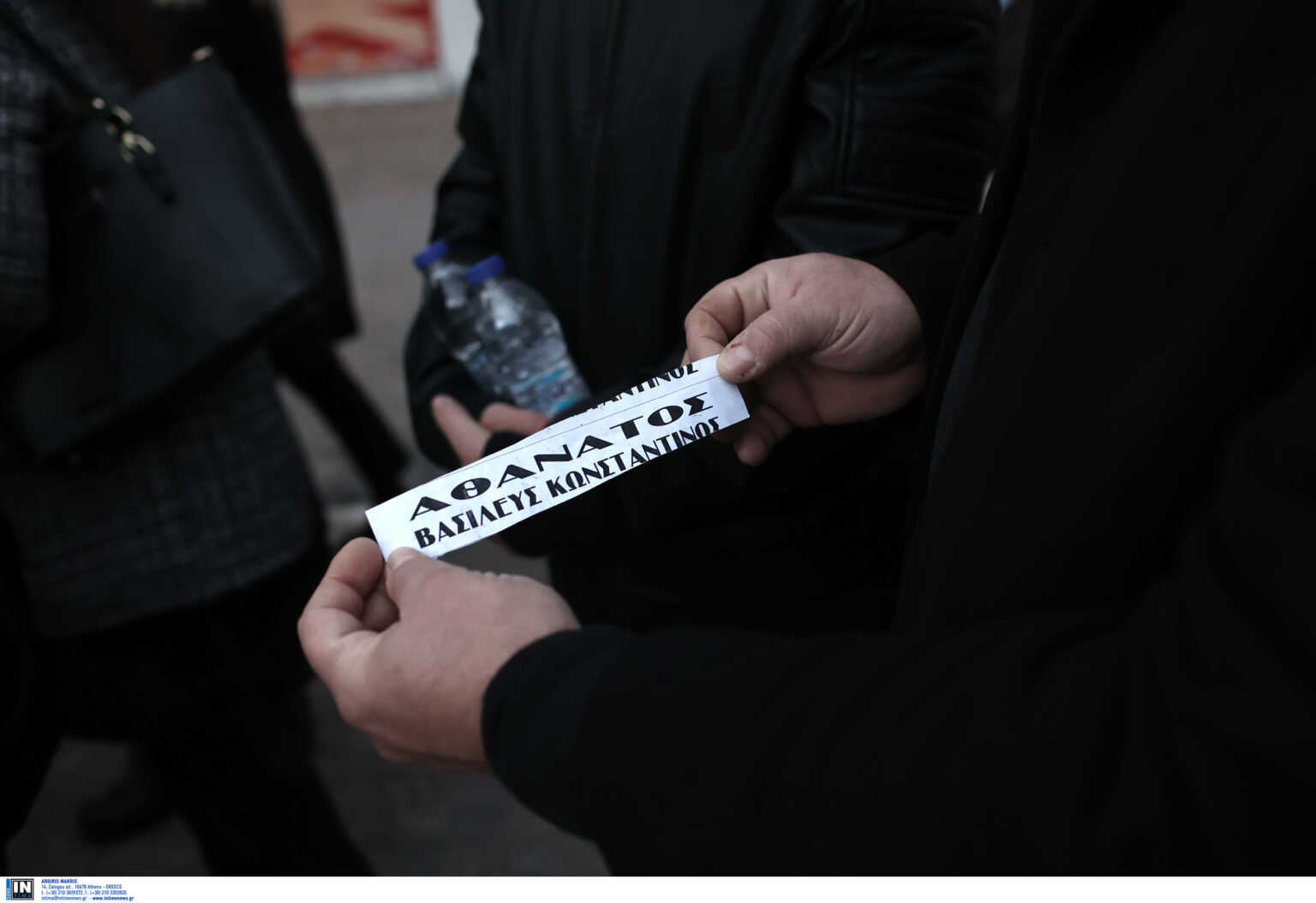 Οι άνθρωποι που έχουν συγκεντρωθεί έξω από το Παρεκκλήσι της Μητρόπολης Αθηνών για να αποχαιρετήσουν το Βασιλιά Κωνσταντίνο (σχηματίζοντας τεράστια ουρά) σε κάποια στιγμή έψαλλαν τον εθνικό ύμνο.