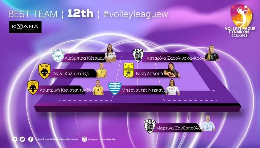 Διαγώνια: Καταρίνα Ζαρολίνσκα-Κρολ (ΠΑΟΚ) 24π. (21/44 επ., 1 άσσος, 2 μπλοκ).