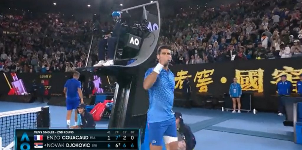 Avustralya Açık ikinci turda Novak Djokovic, rakibi Enzo Couacaud'ı 6-1, 6-7, 6-2 ve 6-0'lık setlerle yenerek bir üst tura yükseldi.