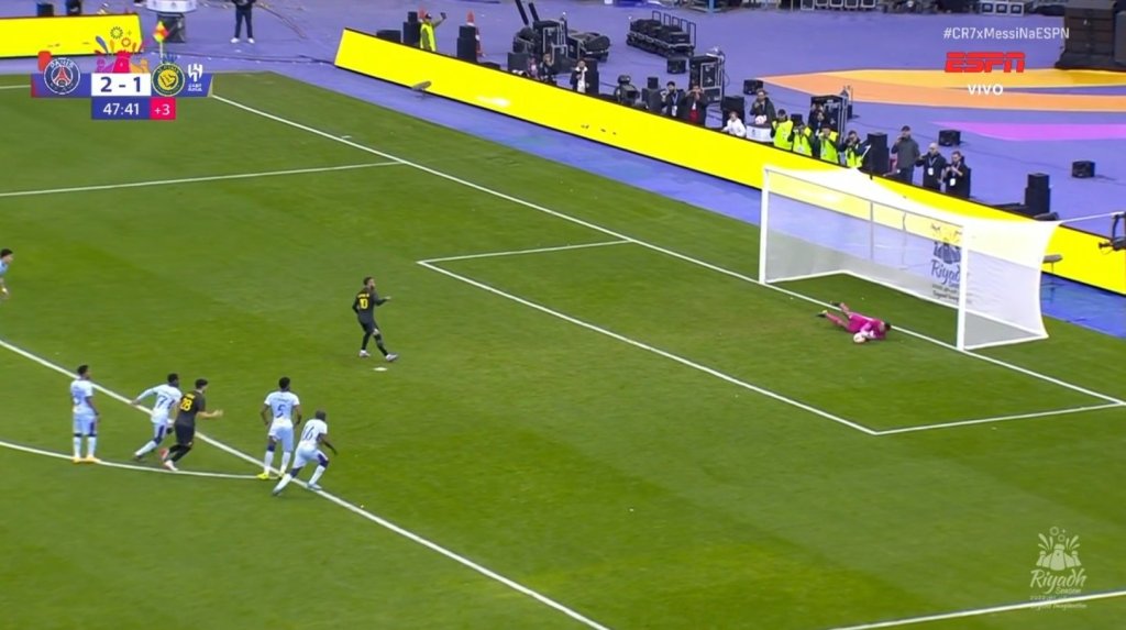 Στο 45+2’ ο Αλ Μπουλαϊχί έκανε πέναλτι στον Νεϊμάρ, ο ίδιος το εκτέλεσε και ο Αλ Οβάις του είπε.