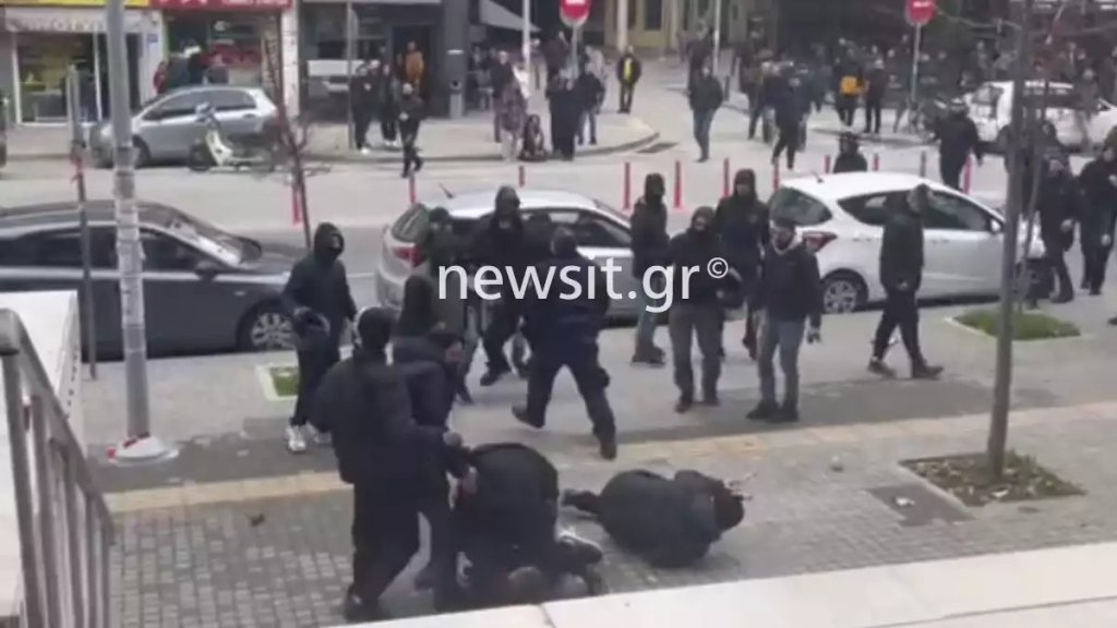 Επεισόδια ξέσπασαν έξω από το Δικαστικό Μέγαρο Θεσσαλονίκης και πέφτει ξύλο μεταξύ κουκουλοφόρων, την ώρα της δίκης για τη δολοφονία του 19χρονου Άλκη Καμπανού στην περιοχή Χαριλάου.