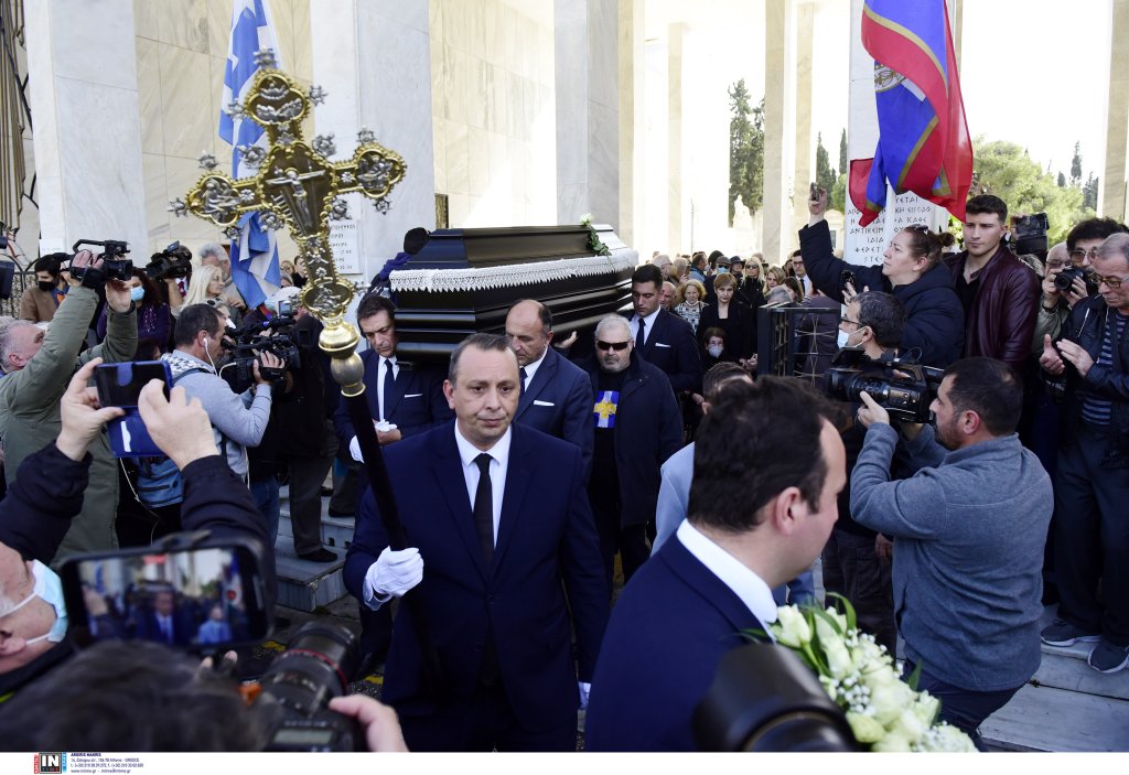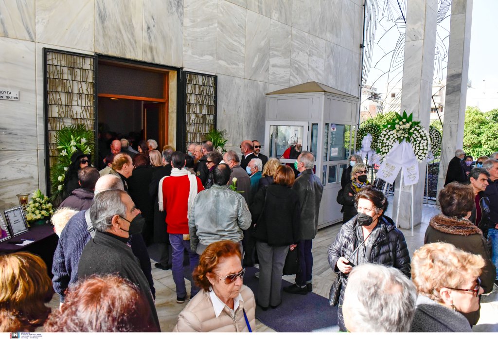 Συγκινητική ήταν η στιγμή, που οι παρευρισκόμενοι φώναξαν «Αθάνατος» και χειροκρότησαν με δάκρυα στα μάτια όταν έφτασε η σορός. Μεταξύ άλλων, στην κηδεία δίνουν το «παρών» η Άννα Φόνσου, η Μαίρη Βιδάλη, ο Γιάννης Μπουρνέλης.