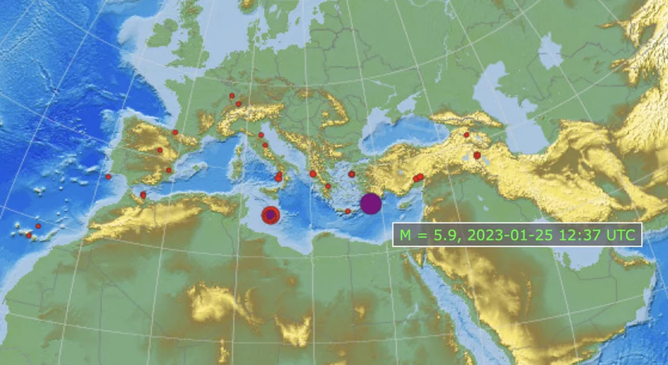 Η εκτίμηση του Ευρωμεσογειακού ήταν αρχικά ότι ο σεισμός ήταν 6 Ρίχτερ, αλλά στη συνέχεια το άλλαξε σε 5,9