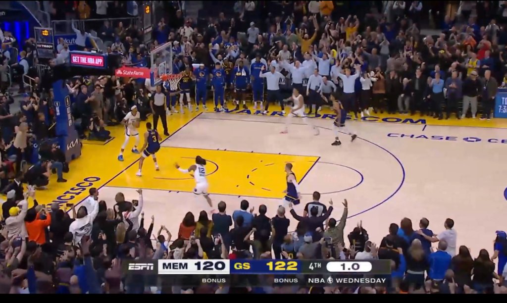 Το παιχνίδι, στο Chase Center, ήταν συναρπαστικό, από τα πρώτα λεπτά, με τους Γκρίζλις να προηγούνται 53-54 στο ημίχρονο. Στα μισά του τρίτου 12λεπτου, η ομάδα του Μέμφις πήρε διψήφιο προβάδισμα, 68-78, αλλά, δεν το κράτησε και μπήκε στη τέταρτη περίοδο, προηγούμενη 90-96. Στα 6:06 για το τέλος, οι Γκρίζλις βρέθηκαν ξανά στο +10, 99-109, αλλά, οι Γουόριορς, με καλάθια των Κάρι και Πουλ, έφεραν το παιχνίδι στην ισοπαλία, 113-113, 2:18 πριν το φινάλε. Οι βολές του Κάρι έφεραν μπροστά στο σκορ τους Γουόριορς, 116-113, αλλά, με 1:14 να απομένουν για το τέλος, ο ηγέτης των πρωταθλητών αποβλήθηκε, όταν πέταξε το μασελάκι του στην εξέδρα. Με πέντε πόντους του Ζα Μοράντ, οι Γκρίζλις βρέθηκαν να προηγούνται 117-118, στα 26.1 δευτερόλεπτα, για να ακολουθήσει η απάντηση, με τρίποντο, του Κλέι Τόμπσον, με τον Κλαρκ να ισοφαρίζει, για τους Γκρίζλις, 120-120, 6.1 δευτερόλεπτα. Τελικά, το λέι απ του Πουλ χάρισε τη νίκη στους Γουόριορς.