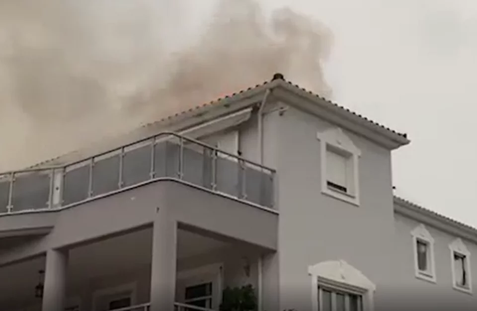 Σύμφωνα με τις πρώτες πληροφορίες στην περιοχή ακούστηκε ένας δυνατός κρότος ύστερα από κεραυνό, που έπεσε και άμεσα ξέσπασε φωτιά στην ξύλινη οροφή της κατοικίας.