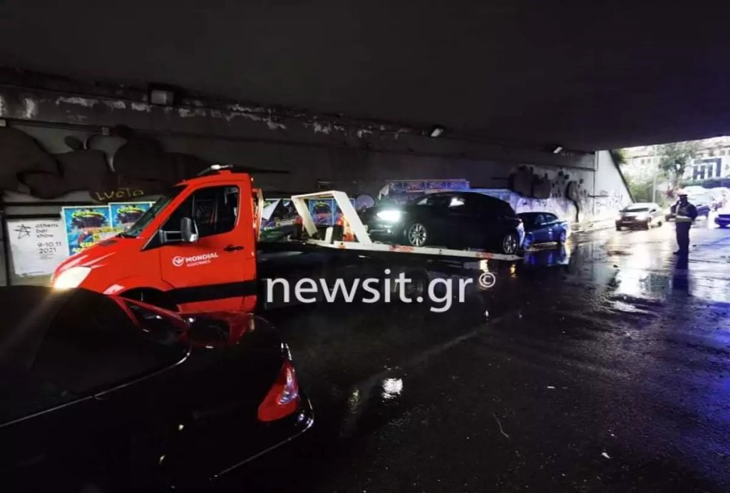 Κακοκαιρία: Εγκλωβισμένα οχήματα, πλημμύρισε η υπόγεια διάβαση στη Σπύρου Λούη (VIDEO)