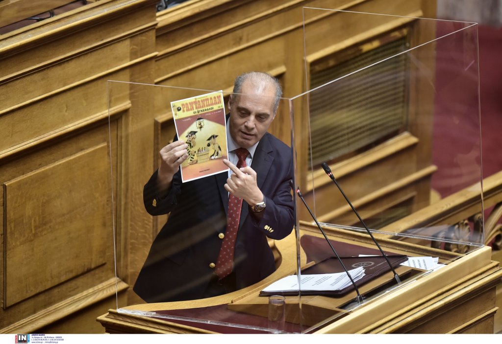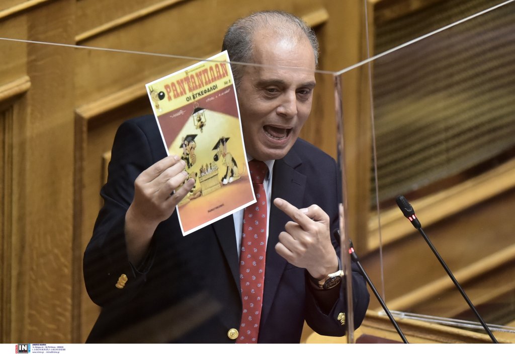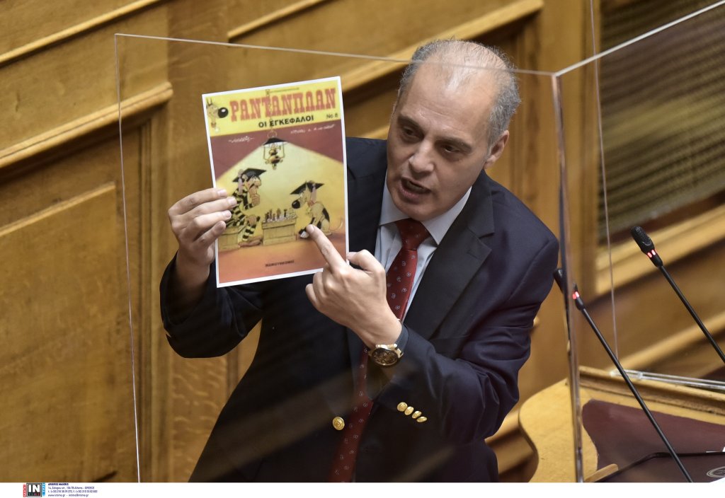 Ο πρόεδρος της Ελληνικής Λύσης, Κυριάκος Βελόπουλος ανέβηκε σήμερα στο βήμα της Βουλής κρατώντας ένα τεύχος του περιοδικού Ραντανπλάν. Επέλεξε αυτό τον τρόπο για να σχολιάσει τις κόντρες μεταξύ ΝΔ και ΣΥΡΙΖΑ.