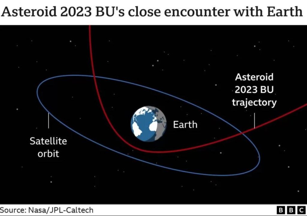 Αξίζει να σημειωθεί ότι,η βαρύτητα του πλανήτη μας τράβηξε τον αστεροειδή 2023 BU και «προσάρμοσε» την πορεία του στο διάστημα. «Πριν συναντήσει τη Γη, η τροχιά του αστεροειδούς γύρω από τον Ήλιο ήταν περίπου κυκλική, προσεγγίζοντας την τροχιά της Γης, και χρειάστηκαν 359 ημέρες για να ολοκληρωθεί η τροχιά του γύρω από τον Ήλιο», ανέφερε η αμερικανική διαστημική υπηρεσία σε δήλωσή της.