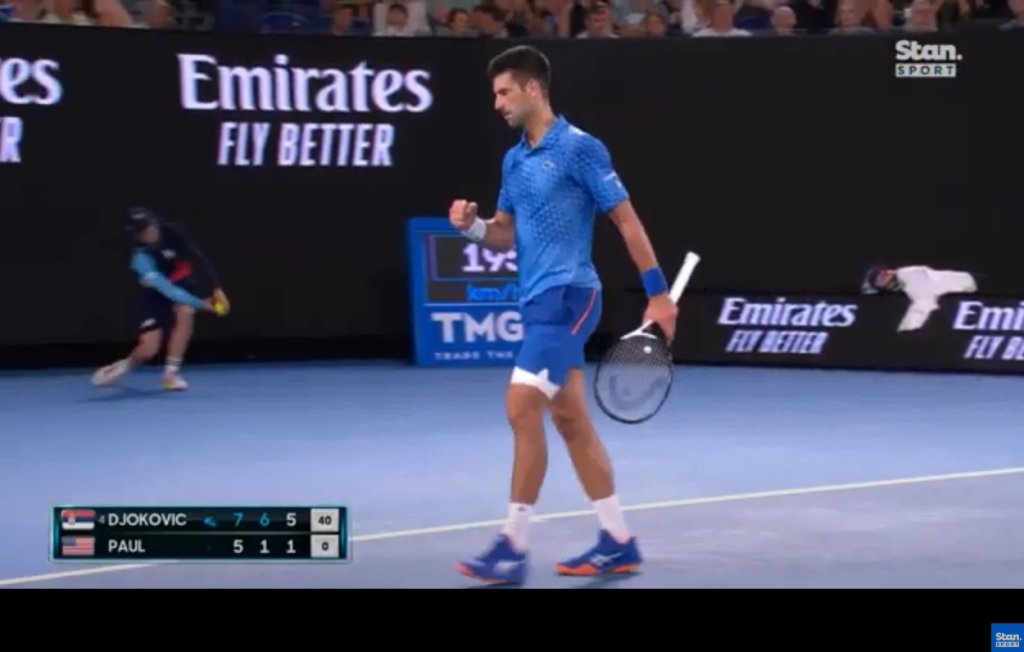 Μόνο μετά το 5-1 στο πρώτο σετ, ο Αμερικανός Πολ έβγαλε αντίδραση, πηγαίνοντας να κάνει μία μεγάλη ανατροπή, αλλά μετά τα πάντα άλλαξαν προς το χειρότερο. Στο πρώτο σετ βρέθηκε να χάνει με 5-1 και τον Τζόκοβιτς να έχει set point στο σερβίς του, παρά το γεγονός ότι ο Σέρβος έκανε κακό παιχνίδι με 9 winners και 17 αβίαστα λάθη μέχρι εκείνο το σημείο! Ο Πολ γλίτωσε το σετ και έσπασε το σερβίς του Νόλε, για να μειώσει σε 5-3 και να αναθαρρήσει λίγο. Ο Σέρβος συνέχισε να κάνει λάθη, δίνοντας διπλό break point στον Πολ, με τον Αμερικανό να σημαδεύει το μπάκχαντ του Τζόκοβιτς και να μειώνει σε 5-4 και στη συνέχεια να ισοφαρίζει! Όμως, ο Νόλε κάπου εκεί άρχισε να συνέρχεται κι αφού κράτησε το σερβίς του, έκανε το break από λάθη του Αμερικανού και πήρε το πρώτο σετ.