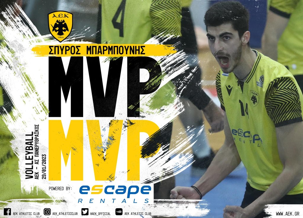 Η ΑΕΚ επικράτησε με 3-0 σετ του Πανερυθραϊκού και συνέχισε ιδανικά στο Πρωτάθλημα της Pre League ανδρών. Σε αυτό το παιχνίδι ο Σπύρος Μπαρμπούνης αναδείχθηκε «Escape Car Rentals» MVP, καθώς ήταν εξαιρετικός και βοήθησε αρκετά την Ένωση σε όλη την διαρκεία της αναμέτρησης.