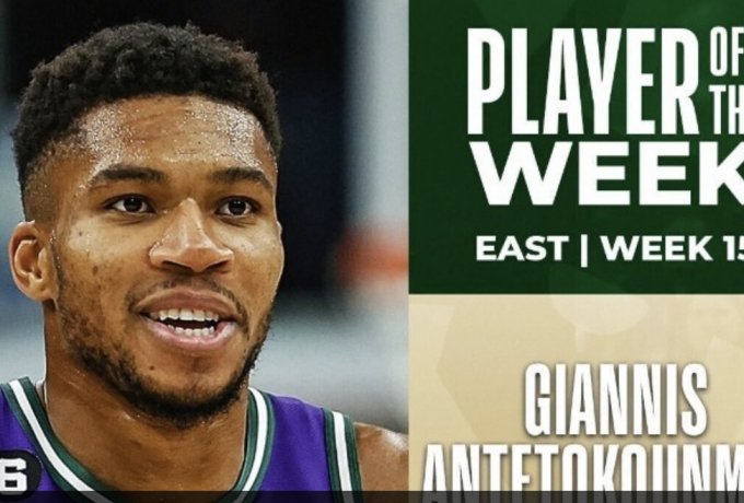 Συγκεκριμένα, ο Greek Freak μέτρησε 38.3 πόντους, 12.8 ριμπάουντ και 4.5 ασίστ στο 4-0 των «Ελαφιών» το διάστημα 23-29 Ιανουαρίου.