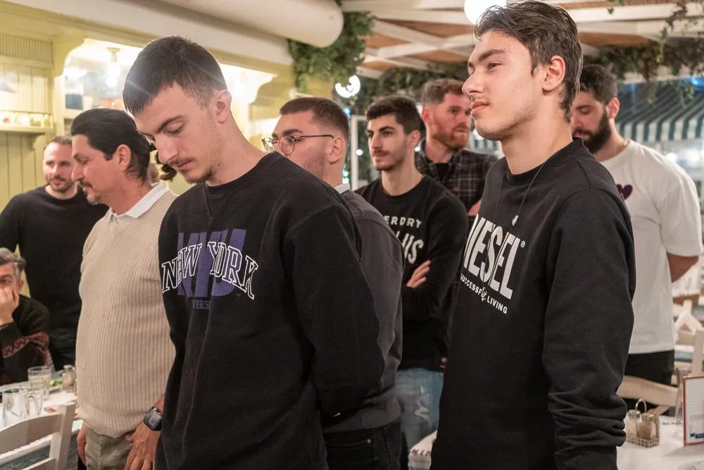 Παίκτες και τεχνικό σταφ, αφού γευμάτισαν, έκοψαν την πίτα, με τον αθλητή της ΑΕΚ, Νίκο Παλέντζα να είναι ο τυχερός.