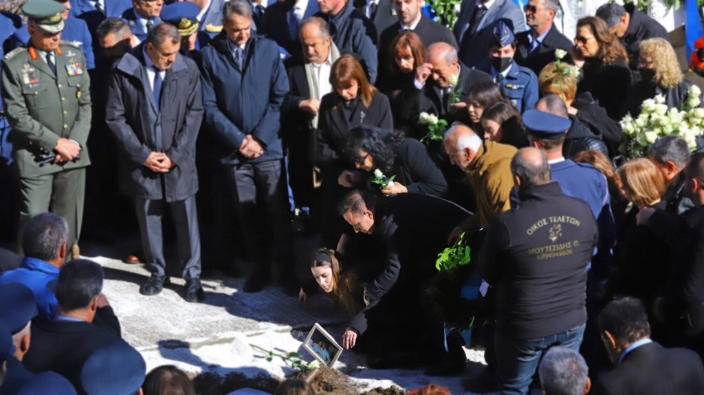 Φίλοι και συγγενείς είπαν το τελευταίο «αντίο» στον σμηναγό ενώ τραγική φιγούρα η σύντροφός του με την οποία ετοιμαζόταν να παντρευτεί.