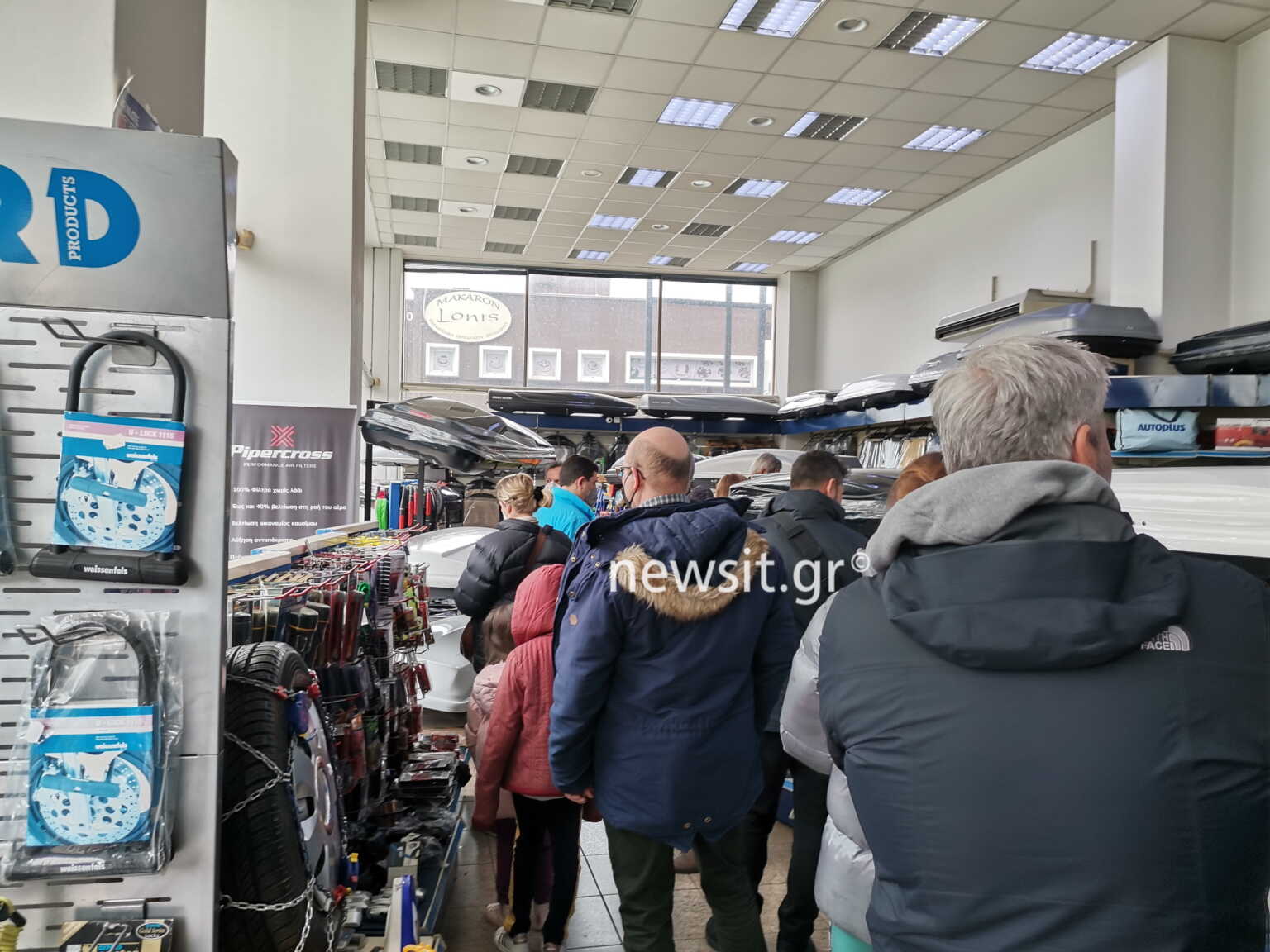 Στα καταστήματα με αξεσουάρ αυτοκινήτων οι ουρές από τον κόσμο είναι τεράστιες από το πρωί του Σαβββάτου.